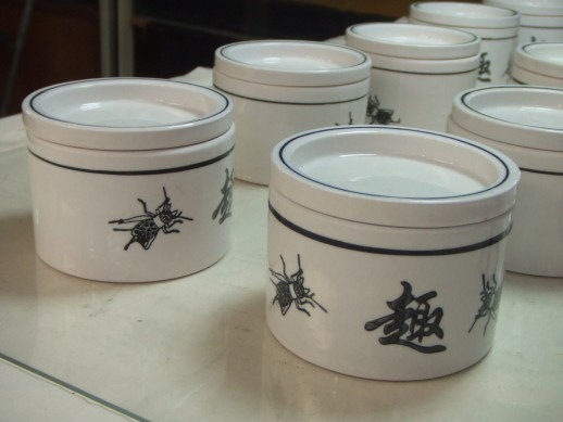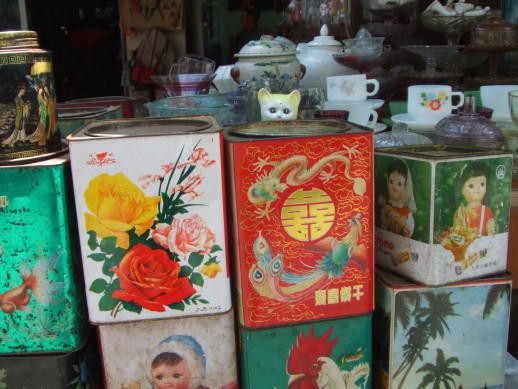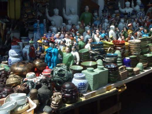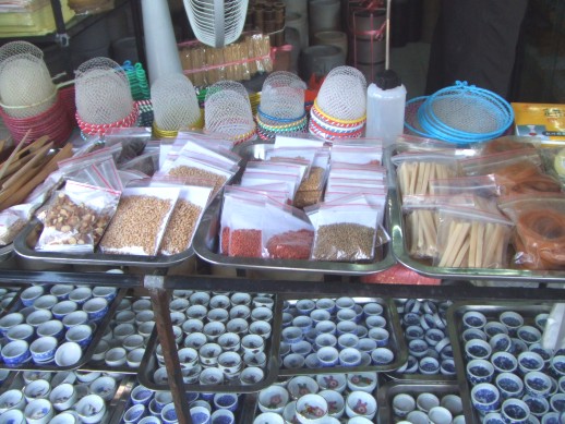 Dann kamen wir am Grillen-Markt vorbei. Wie der Name schon sagt, gab es dort fast nur Grillen und deren Zubehoer zu kaufen. Es soll auch wieder Grillenkaempfe in Shanghai geben. Mit einem Holzstab beruehrt man die Tierchen um zu sehen wie aggressiv sie sind - ich habe es nicht ausprobiert.