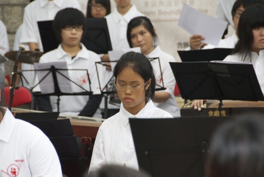 Es war wohl eine Art Musikwettbewerb. Die Trommler hatten leider schon ihre Instrumente eingepackt, aber es standen ja noch genug andere Akteure mit ihren Instrumenten rum und warteten auf ihren Einsatz. Das warten hat sich auch fuer uns gelohnt. Das große Jugendorchester mit den zum Teil chinesischen Instrumenten war ein super Motiv.
