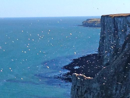 Brempton Cliffs ist ein riesiges Vogelschutzgebiet, welches ueber Hunderttausende Seevoegel in ihrer natuerlichen Umgebung beherbergt. In den Cliffs, die an einigen Stellen bis zu 100 meter hoch und ueber 10 km lang sind, kann man wunderbar die verschiedenen Vogelarten beobachten. Unter Ihnen sind Papageientaucher, Toelpel, Tordalk, Silbermoeven und viele mehr.
