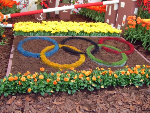 Das olympische Blumenfeuer darf natuerlich auch nicht fehlen.