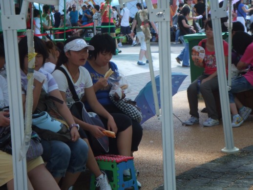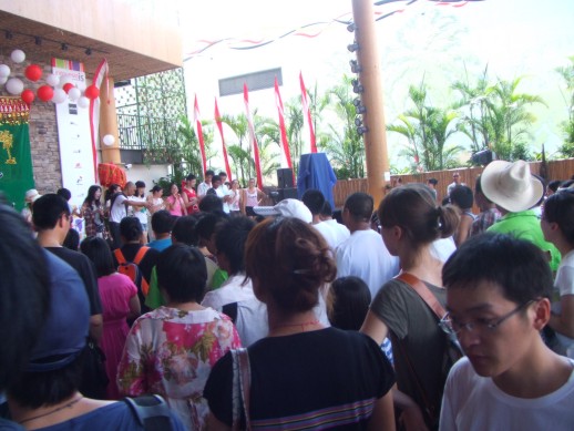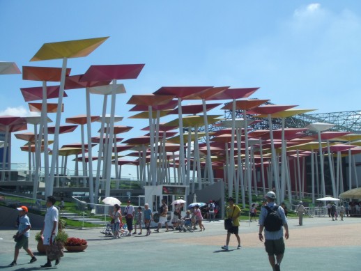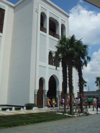 Unser eigentliches Ziel der Reise war die Expo, die wir dann am Freitag auch besuchten. Wir hatten Glueck. Es gab am Eingang (Gate 4) keine langen Wartezeiten, sondern nur schubsende Chinesen. Dies scheint hier wohl so eine Art Volkssport zu sein. Ein Pavillon hatte sogar ein Laufband mit der Aufschrift „ No pushing“. In den deutschen und chinesischen Pavillon hatten wir keine Chance reinzukommen. Da brauchte man noch ein extra Ticket, viel Wasser, eine gute Kopfbedeckung (wir hatten den Tag 37 Grad) und gaaanz viel Zeit. Die Wartezeit betrug ca. 4 Stunden. Andere Pavillons waren aber auch sehenswert, wie z.B. der marokkanische. Die haben sich super dargestellt, dass man sofort Lust bekam das Land zu besuchen.