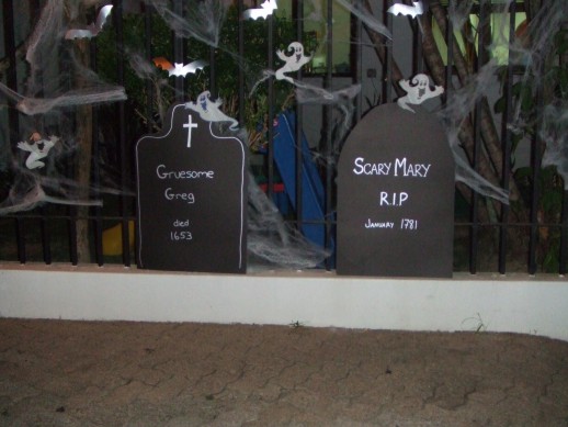 Hier wird richtig Halloween gefeiert, mit allem was dazu gehoert – verkleiden, Haeuser werden geschmueckt, in den Vorgaerten finden Partys statt - Es war einfach sehenswert und die Fotos sagen doch wohl alles….