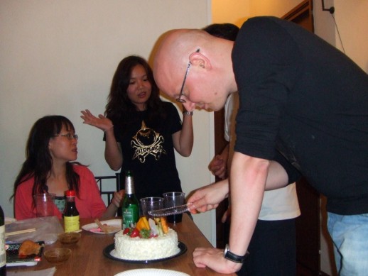 In den letzten 14 Tagen hatten wir verschiedene Aktivitaeten mit Michaels Kolleginnen und Kollegen. Angefangen mit Tims Geburtstag, letzten Freitag die Abschiedsfeier von Miri und am letzten Wochenende hatten wir einen Bootsausflug - bei Taifun-Warnstufe Nr. 1.