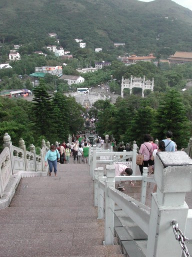 Die 260 Stufen sind wir natuerlich nach oben und dann wieder nach unten gegangen. Um zu dem Buddha zu kommen muss man ein Meal-Ticket kaufen, das heisst, dass man noch einen kleinen Imbiss bekommt. Der hat uns uebrigens sehr geschmeckt.