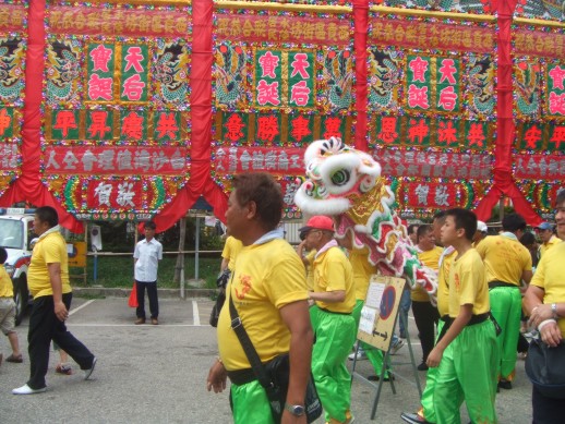 Letzten Sonntag wollten wir unserem Besuch die gruene Seite von Hong Kong zeigen. Ueber Ma On Shan kamen wir nach Sai Kung. Wir hoerten schon von weitem die Musik zum Loewentanz. Da wollten wir natuerlich wissen was da wohl los ist. Also immer der Musik entgegen laufen.