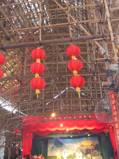 Es war ein Fest zu Ehren der Goettin „Tin Hau“ (Goettin der Meere). Aus diesem Grund wurde - nur aus Bambus - ein komplettes Opernhaus aufgebaut. Fast jeder Platz war besetzt und alle lauschten einer chinesischen Oper (die nicht unbedingt fuer Langnasen Ohren gemacht ist).