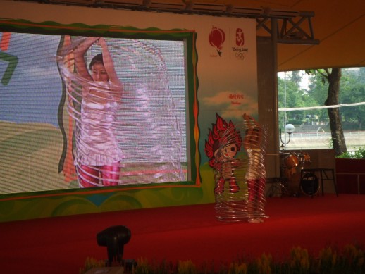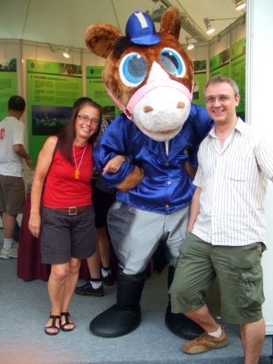 Ach, ich vergass… es gab noch zwei etwas kleinere Bildschirme, wo sage und schreibe auch zwei Chinesen sich eine Sportveranstaltung angesehen hatten. In der SCMP war am Samstag ein Foto von schlafenden Chinesen die sich das Dressurreiten ansehen wollten, aber ein Nickerchen bevorzugten – gibt halt nichts fuer sie zu gewinnen.