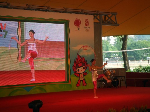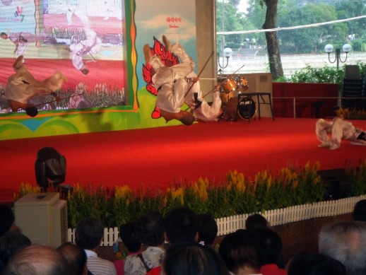 ...wir konnten (live) eine chinesische Show mit vielen Akrobaten sehen – einfach phantastisch. Es gibt uebrigens jeden Tag eine andere Veranstaltung, mal Tanz-und Gesang Performance, mal Varietee und vieles mehr. Fuer uns war es ein sehr bunter und netter Nachmittag.