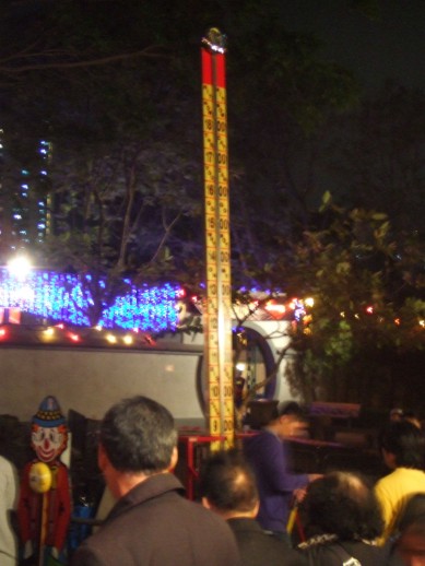 In diesem Jahr sind wir nach Shatin gefahren um das neue Jahr zu begruessen. Dort, an der Town Hall, waren 3 große Buehnen aufgebaut. Es gab viel zu sehen, von der Blaskapelle bis zu chinesischen Trommlern. Unter anderem gab es noch einen Playground, mit Spielen wie den „Hau den Lukas“ und zu gewinnen gab es natuerlich auch etwas. Das Ganze fand unter freiem Himmel statt und da ich doch mit der Zeit kalte Fuesse bekam, sind wir noch vor Mitternacht wieder zurueck nach Tung Chung gefahren und haben uns das Feuerwerk vom IFC, im Fernsehen angesehen. Es waren ueber 400.000 Menschen dort um das Spektakel live zu sehen. Ich war froh, dass mich die Heizkoerper waermten und nicht die Menschenmenge.